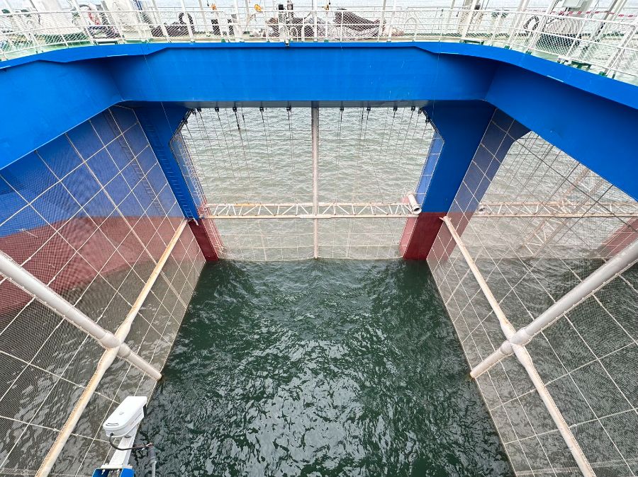 11月19日,全球首创漂浮式动力定位网箱型工船“湛江湾1号”在湛江正式交付,我国现代化海洋牧场建设再增新生力量。湛江湾实验室工作人员向考察团介绍,“湛江湾一号”创新性实现漂浮式动力定位养殖,从而能够摆脱锚固系统的依赖,可以长时间在超过100米水深的水域低功耗运行。同时,船上还配置智能化饲料投喂、渔网清洗、平台监测、养殖监测、无线传输等功能。