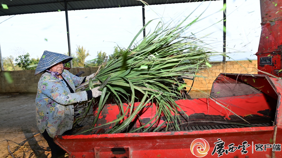 饲养场负责人王飞朝看到了时机。她重复实验,把甘蔗叶破碎、发酵,做成牛饲料。“本钱低了,牛也爱吃。”她说,牛场的“吃饭”问题解决了,蔗农也多了一条来钱的路子。